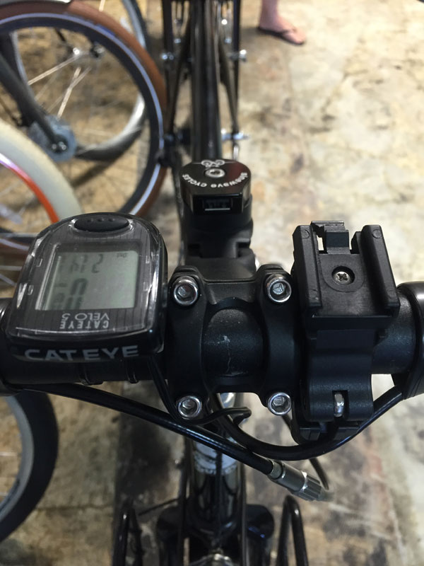 All of this technical gobbledy-gook means that, as I pedal merrily along, my cell phone and backup power battery – or my iPad mini or my headlight – will be charging. My devices simply plug into the USB hub at the top of my handlebar post (see photo).